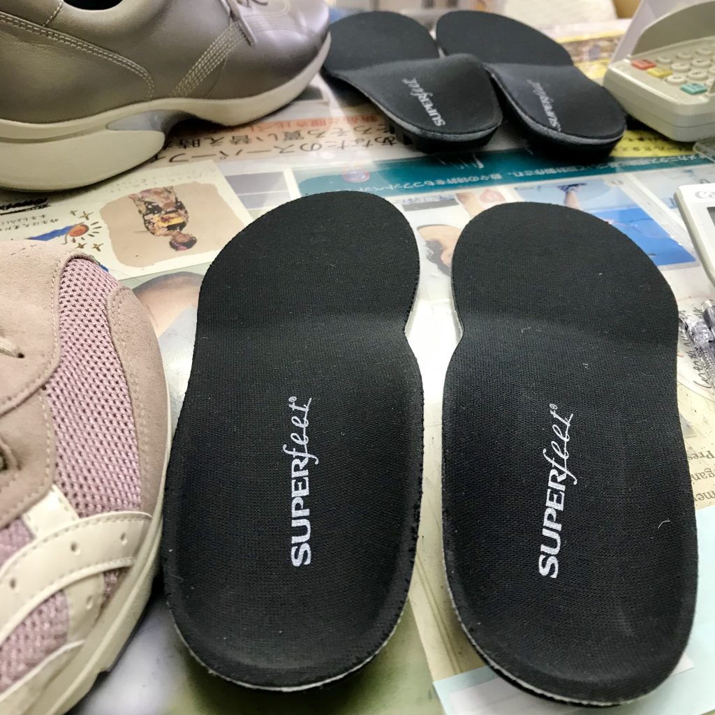 『全ての靴にスーパーフィートを』健康を起点にを考えれば、本当は靴を数足に決めていつも同じ形の靴を履いた方がいいですが、特に女性はそういう訳でにもいきませんので、この様に全てにスーパーフィートを入れて生きて行くのがベストライフです、
