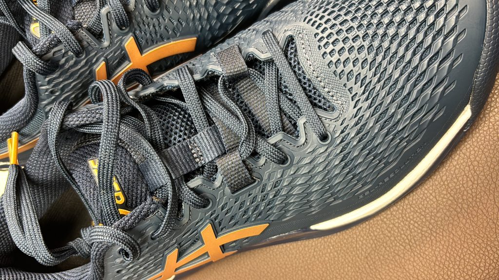 まずは、GEL RESOLUTION 9オールコート27センチにSUPERfeetトリムブラックを合わせて履いてもらいました。すると、「勝手に前に進む!」と好感触を得ました。